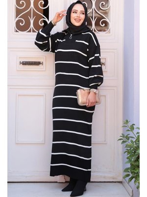 Neva Style Çizgili Siyah Triko Elbise 17206s