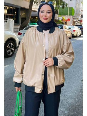 Neva Style Düğmeli Bej Deri Ceket 9264bej