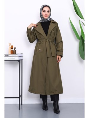 İmaj Butik Haki Kravuze Yaka Kuşaklı Astarlı Trençkot