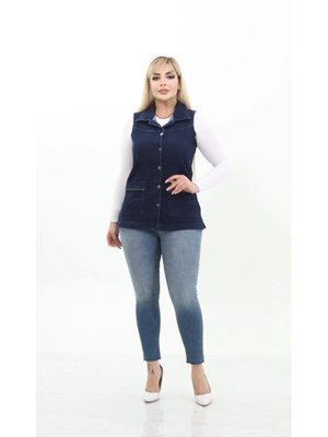 IŞŞIL Koyu Mavi Büyük Beden Esnek Cepli Kot Yelek