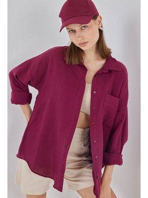 Bigdart Mürdüm Tek Cepli Oversize Müslin Gömlek