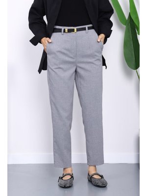 İmaj Butik Gri Kemerli Önü Pensli Havuç Kumaş Pantolon
