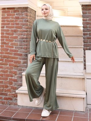 Vav Haki Yırtmaçlı Bluz Pantolontakım