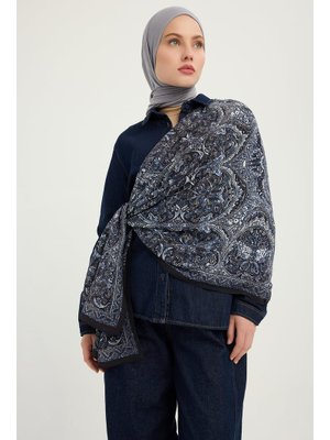 ŞALESS 70x190 Cm Ebedi Saraylar Lacivert Vierra Desenli Viskon Şal