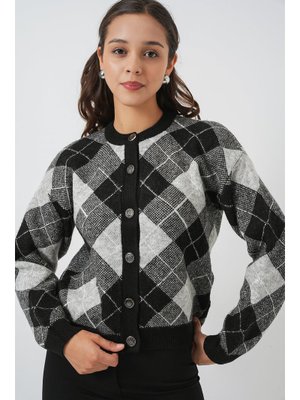 Bigdart Siyah Desenli Düğmeli Triko Hırka