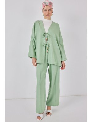 Bigdart E.yeşil Keten Kimono İkili Takım