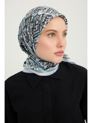 ŞALESS 90x90 Cm Yankılar Şehri Mavi Vierra Desenli Viskon Eşarp