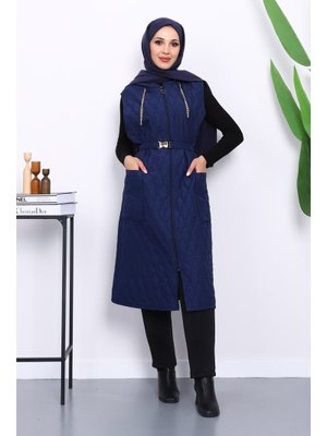 İmaj Butik Lacivert Kapüşonlu Kemerli Kapitone Yelek