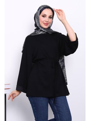 İmaj Butik Siyah Yanları Yırtmaçlı Bel İpli Tunik