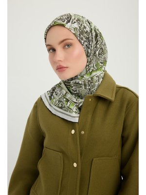 ŞALESS 90x90 Cm Yankılar Şehri Yeşil Vierra Desenli Viskon Eşarp