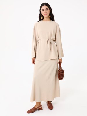Refka Beli Bağlama Detaylı Tunik Etek İkili Takım Tas Rengi