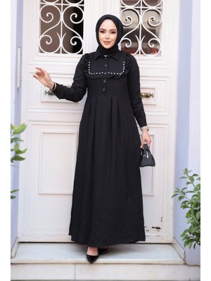 Neva Style Düğme Detaylı Siyah Elbise 7224s