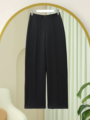 Podyumplus Siyah Bol Paça Çimalı İki İp Penye Pantolon