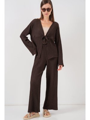 Bigdart Kahverengi Örme Bluz Pantolon İkili Takım