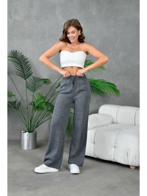 IŞŞIL Füme Fitilli Örme Palazzo Triko Pantolon