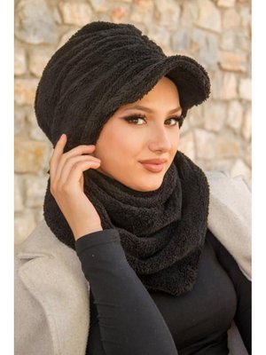 AİŞE TESETTÜR Siyah Kürk Şapka Ve Etol Takım