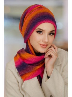 AİŞE TESETTÜR Rengarenk Kışlık Kelebek Bone Şal