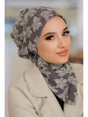 AİŞE TESETTÜR Gri Desenli Bere Ve Etol Takım
