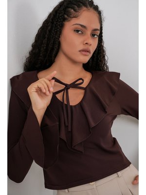 Bigdart Kahverengi Uzun Kol Crop Bluz