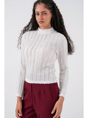 Bigdart Beyaz Dokulu Esnek Örme Bluz