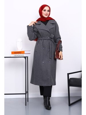 İmaj Butik Füme Kruvaze Yaka Kuşaklı Kaşe Kaban