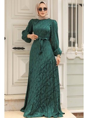 Neva Style Desenli Zümrüt Yeşili Elbise 23272zy