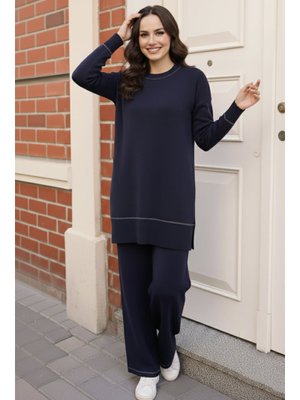 Benguen Lacivert Çizgili Şeritli Triko Takım