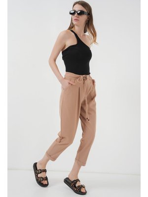 Bigdart Bisküvi Kemerli Keten Pantolon