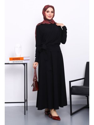 İmaj Butik Siyah Bel Bağlamalı Etekli Takım