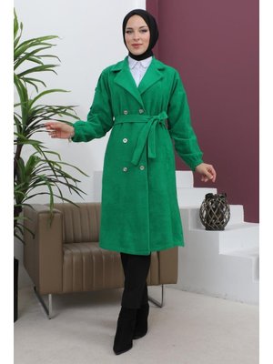 MISSVALLE Düğme Detaylı Kaşe Kaban Zümrüt