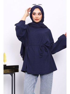İmaj Butik Lacivert Yanları Yırtmaçlı Bel İpli Tunik