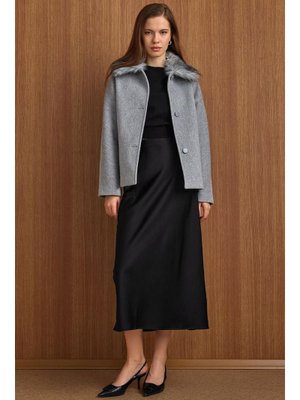 Olcay Açık Gri Yakası Çıkabilen Kürklü Kısa Kaban