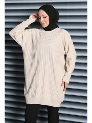 Tofisa Krem Çima Detaylı Triko Tunik