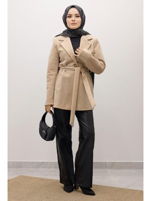 Tesettür Dünyası Bej Cepli Fox Kaban