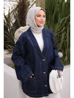 İmaj Butik Koyu Mavi Cepli Kot Ceket