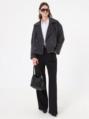 Refka Antrasit Kaşe Kruvaze Kapama Kısa Kaban