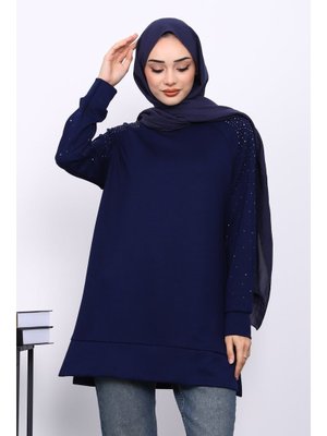 İmaj Butik Lacivert Taş Detaylı Modal Tunik