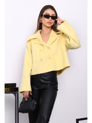 İmaj Butik Sarı Kısa Düğmeli Kaşe Ceket