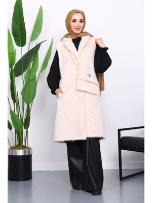 İmaj Butik Krem Çanta Hadiyeli Angora Pelüş Kürk Yelek