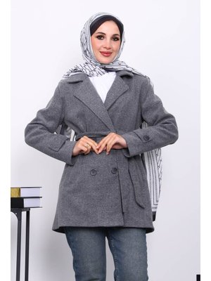 İmaj Butik Füme Kruvaze Yaka Çift Düğmeli Kaşe Kaban