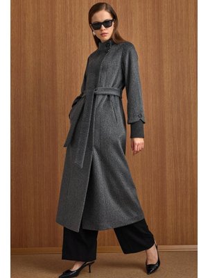 Olcay Antrasit Hakim Yaka Ribana Detaylı Uzun Moher Kaban