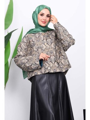 İmaj Butik Yeşil Etnik Desenli Kısa Ceket