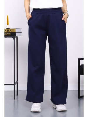 İmaj Butik Lacivert Bel Lastikli Şardonlu Üç İplik Pantolon