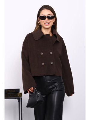 İmaj Butik Kahverengi Kısa Düğmeli Kaşe Ceket