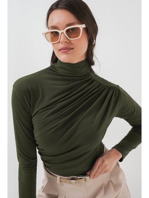Bigdart Haki Büzgü Detaylı Sandy Bluz