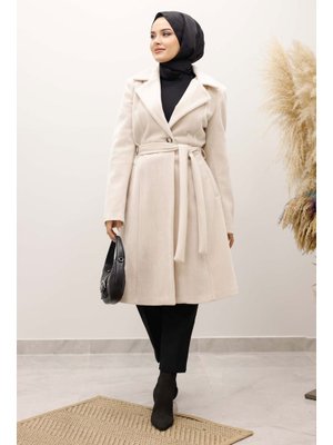 Tesettür Dünyası Bej Astarlı Ara Boy Fox Kaban