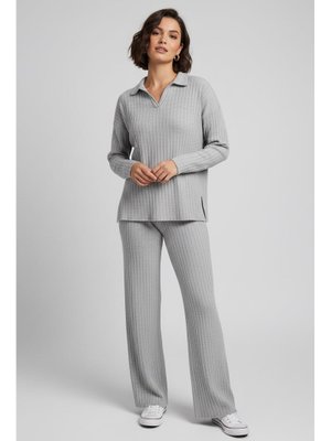 Tofisa Gri Grı Polo Yaka Fitilli Kaşkorse İkili Takım
