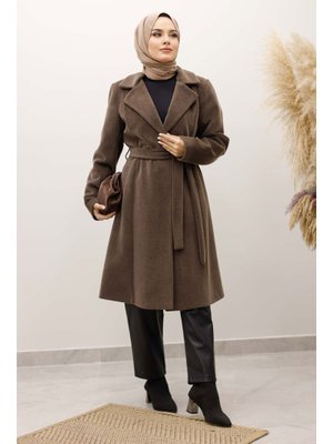 Tesettür Dünyası Kahverengi Astarlı Ara Boy Fox Kaban