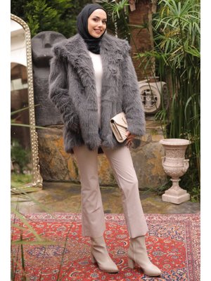 İmaj Butik Füme Kemerli Astarlı Kürk Kaban