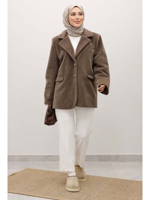 Tesettür Dünyası Kahverengi Çift Düğmeli Alpaka Fox Ceket